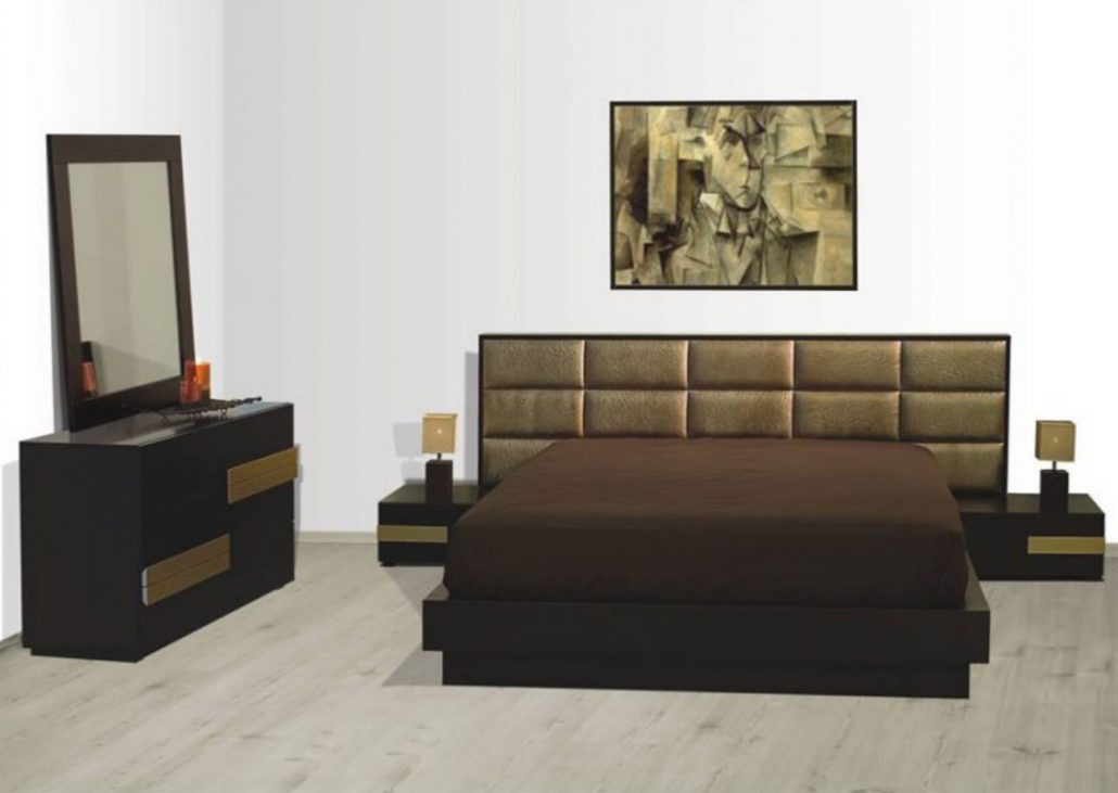 En suite κρεβατοκάμαρα, με μοντέρνα σχεδιάση με τετράγωνα πάνελ απο τεχνόδερμα, σε συνδυασμό φυσικού ξύλου δρυός και λάκας στα πόμολα. Η λεπτομέρια με το τεχνόδερμα δίνει διαχρονικότητα στο σχέδιο. Το σετ περιλαμβάνει κρεβάτι (για διάσταση στρώματος 160*200), 2 κομοδίνα, τουαλέτα και καθρέφτη. Εναλλακτικά ή επιπρόσθετα μπορούμε να έχουμε συρταρίερα και ολόσωμο καθρέφτη. Τα τεμάχια προσφέρονται και μεμονωμένα.